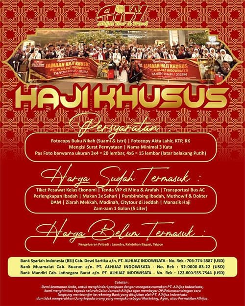Pembiayaan nomor porsi haji menggunakan Akad Ijarah. Untuk Pembiayaan Multijasa. Hal ini Merujuk pada Fatwa DSN-MUI No.112/DSN-MUI/IX/2017, Fatwa DSN-MUI No.044/DSN-MUI/VIII/2004 dan Fatwa MUI No.004/MUNAS X/MUI/XI/2020 . Langsung dapat Porsi Kemenag. Syarat Pembiayaan Mudah!